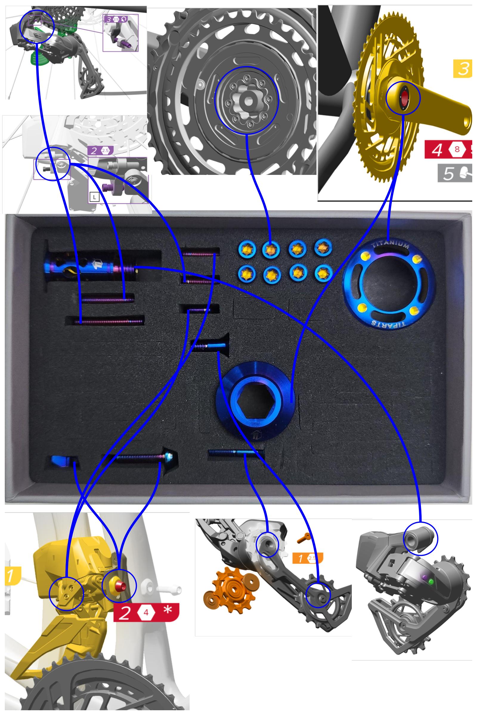 Titanium Upgrade Kit for SRAM Red, Force, Rival E1 AXS Groupsets.